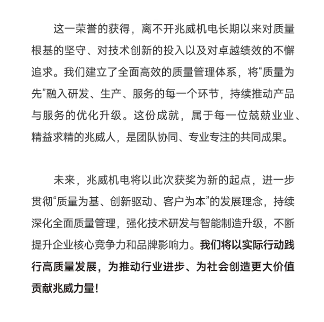 喜报!学会副会长单位——兆威机电荣膺第八届广东省政府质量奖
