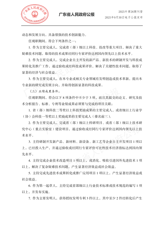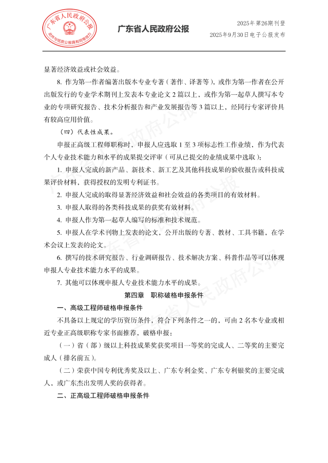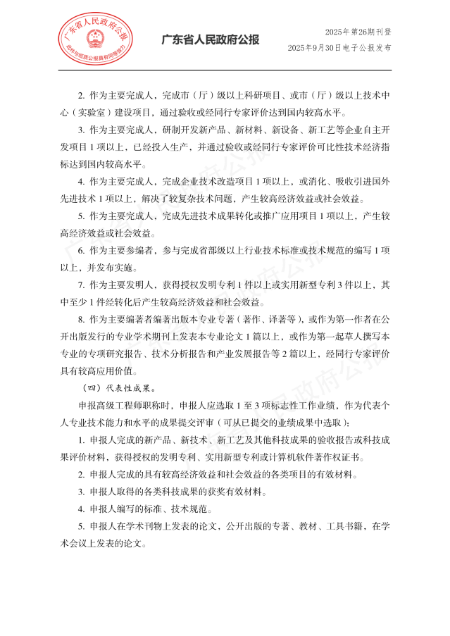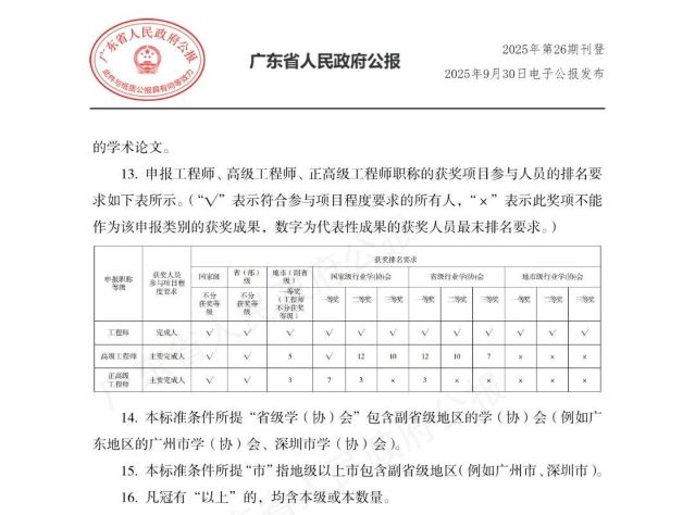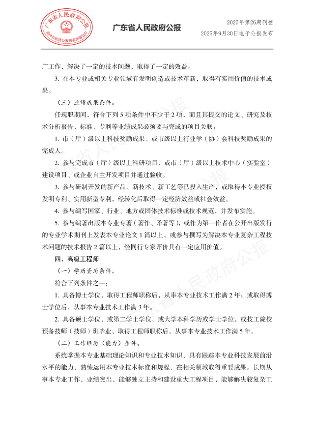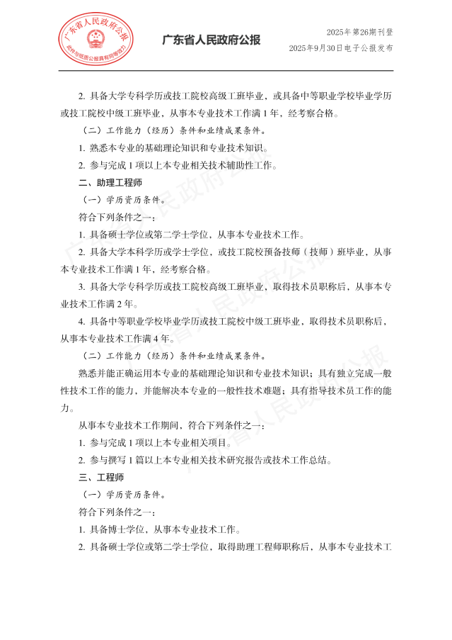 广东省机电工程技术人才职称评价标准条件(粤人社规【2025】32号)